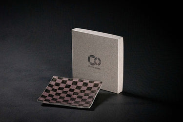 Oshima Tsumugi square plate 13cm checkered pattern