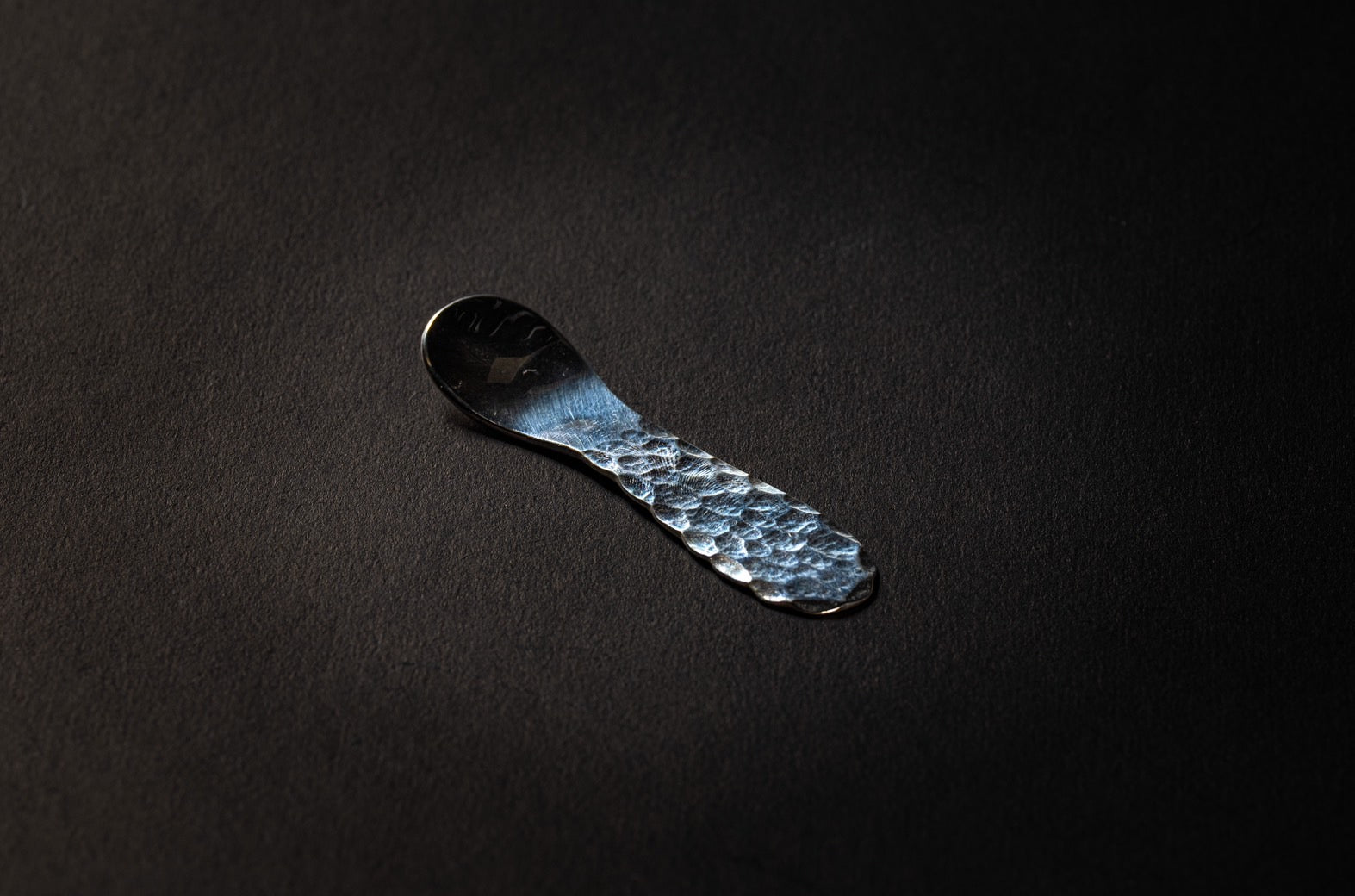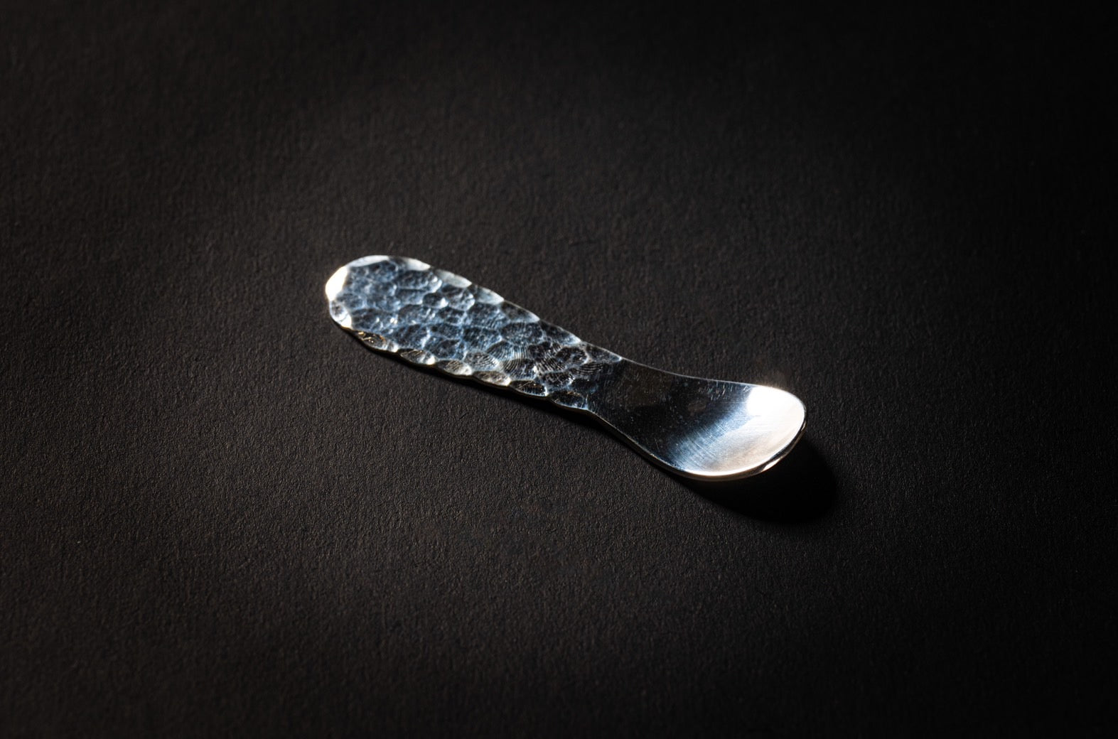 味覚だけでなく視覚でも堪能できる ひとすくいに「心の豊かさ」を 一つ一つ持ち手の部分に金槌で叩いて槌目模様を施した純銀製の本格的なアイススプーンです。口当たりの良さにもこだわり唇に当たる部分に絶妙なカーブ。。 銀は金属の中で1番熱伝導率が良いとされているためご自身の体温がスプーンを伝いカチカチに凍ったアイスを瞬時に溶かし待つことなく食べることができます。 実際に氷にあてると氷が切れてしまうほどの熱伝導率の高さには驚きです。 鎚目模様がキラキラ光りとてもオシャレで使い心地も抜群! 【 アイススプーンを大切なあの方へ】プレゼントにも喜ばれていますが、 ヨーロッパでは銀の匙を咥えて産まれた子は食べ物に困らないと言われており お食い初めから大人になってからも使えるスプーンとして大変喜ばれる人気商品です。 ※本製品にアイスクリームは付属しておりません。 ※手作り製作により若干のデザインが変わる場合があります。
