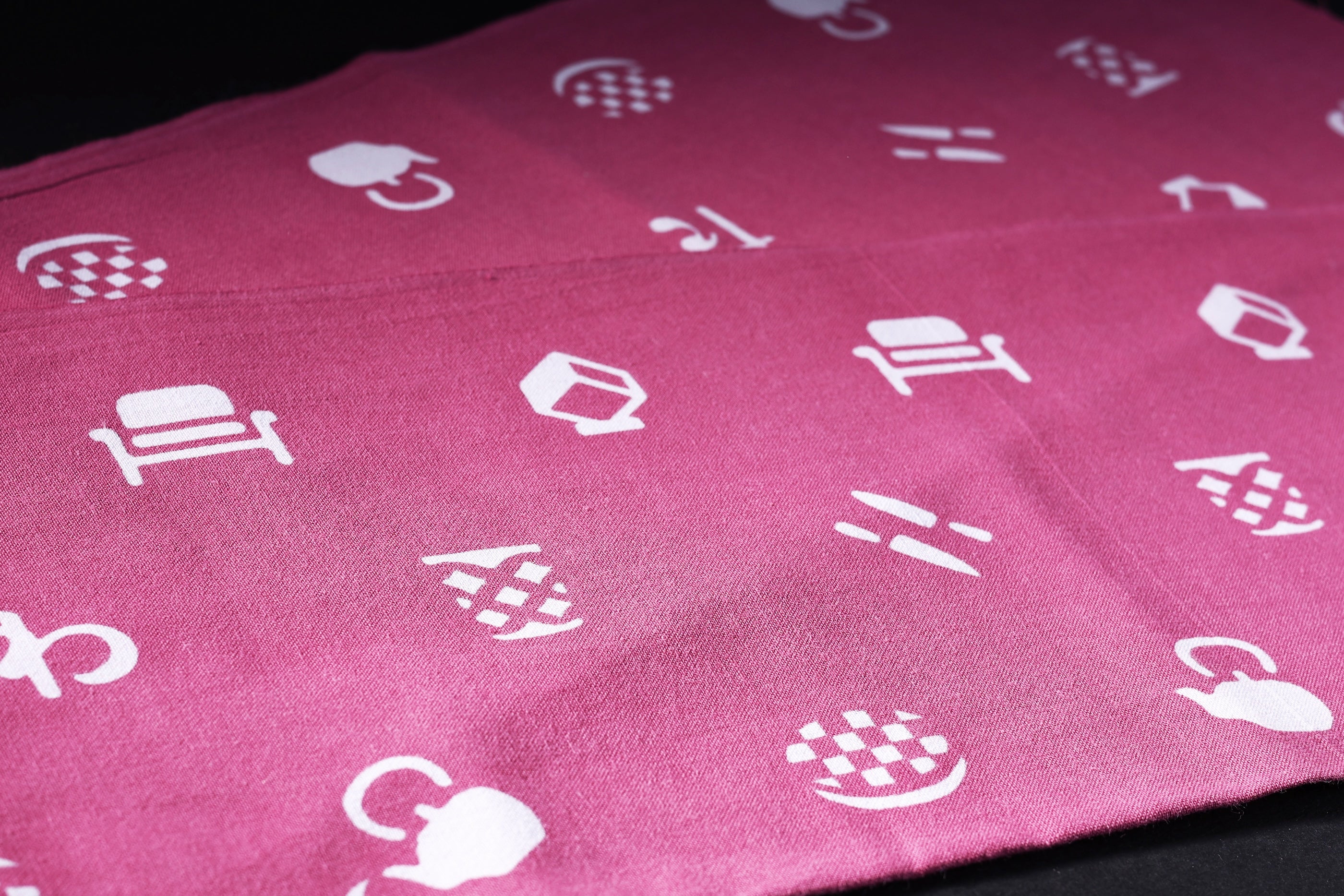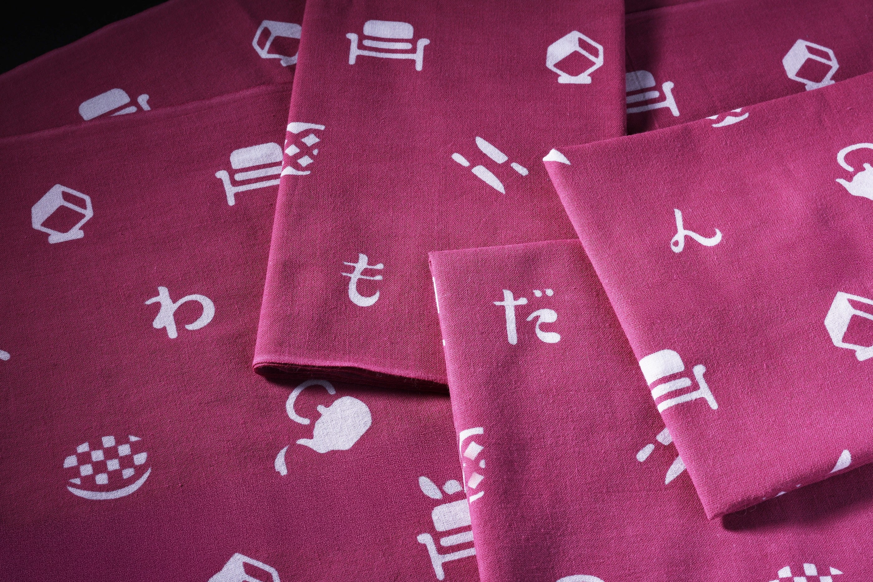 和モダンN6北円山の空間をかたちづくる商品たちをモチーフにデザインされた、オリジナル手ぬぐいです。伝統的な「注染」の技法で染め上げており、表裏の区別なく色が鮮やかに広がります。