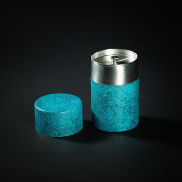 持ちやすい太目のサイズ感とざらりとした独特の手触りの茶筒は、密閉性の高さも特徴の1つ。ステンレス製なので軽いのも使いやすさのポイントになっています。