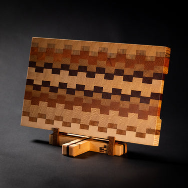 このまな板は、人里離れた山や、海外の様々な地で長い年月をかけて紡いできた木に、新しい息吹をあたえる越前寄木ーtataーが制作。欧米では最高級品とされているエンドグレイン製法で作られています。エンドグレインとは、木材の切断面という意味で、年輪の模様と特性を生かして作られています。その特徴は良いことづくし。■ 包丁が長持ち通常まな板は木の繊維が横向きで作られていますが、エンドグレイン製法で作られたまな板は木の繊維が縦方向を向いています。そのため、包丁の刃に優しく、切れ味が長持ちします。■ 衛生的まな板に傷がつきにくいため、菌が入りにくい構造になっています。そのまま口にするパンなども安心してお使いください。■ 美しいデザイン年輪が織りなす美しいデザインは、食材や料理を引き立てます。食卓に並べてテーブルウェアとしてもお楽しみいただけます。木が素敵に見えるようにデザインされ、丹念に磨き上げられています。小さな傷はヤスリをかけ、食用油でお手入れすればより長く使えるでしょう。