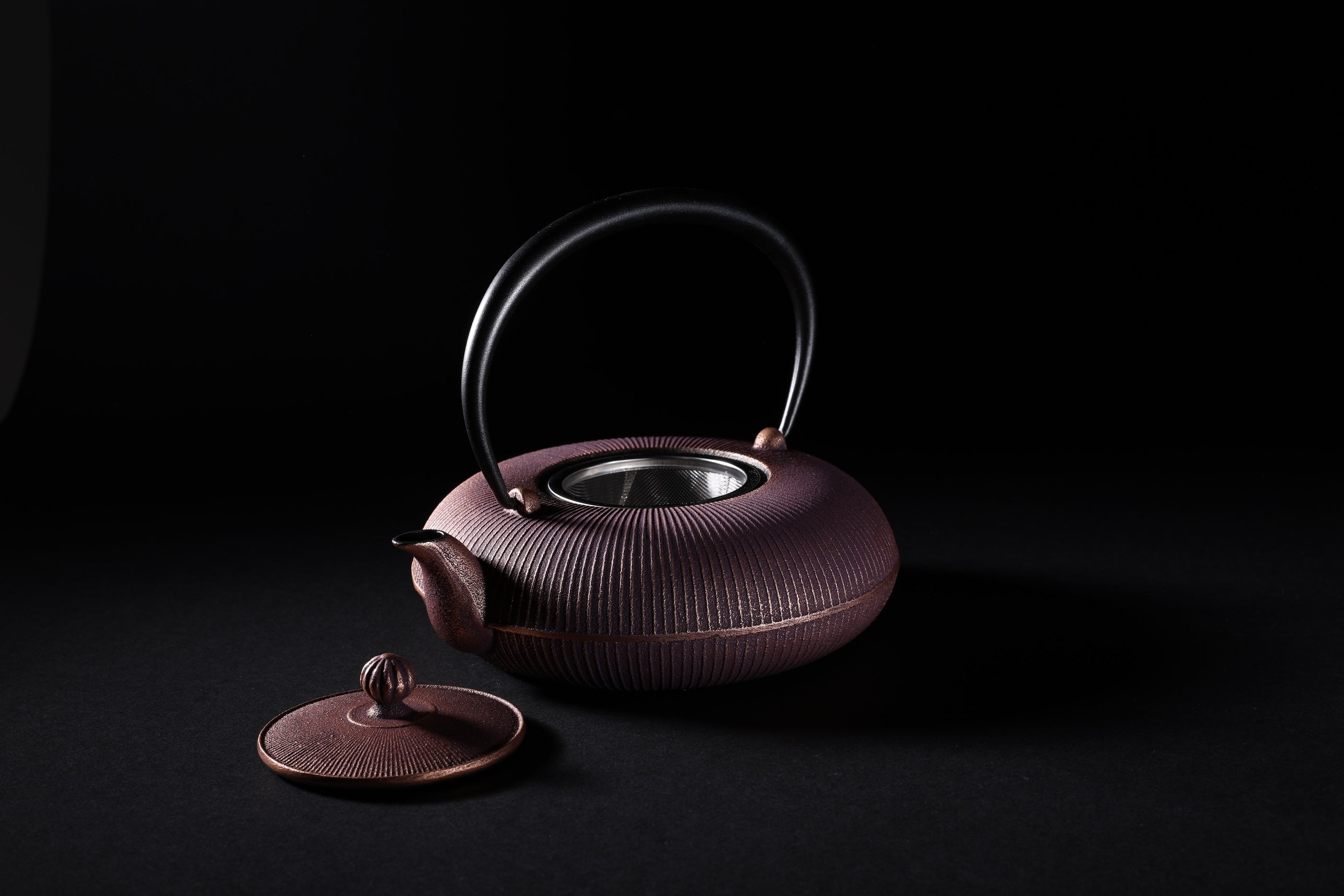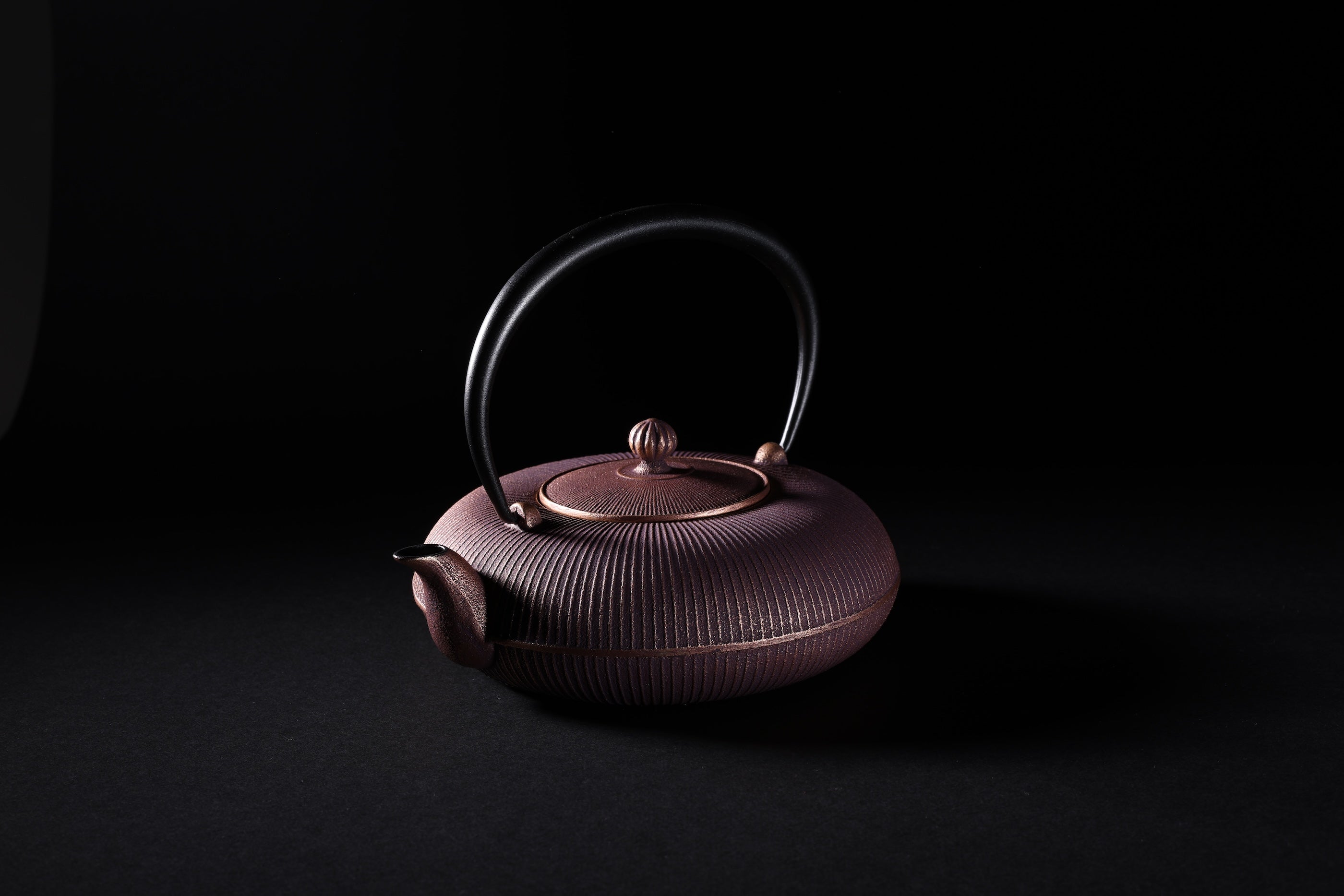 10年前、岩手県の工房でスタートした「鋳技」プロジェクトから生まれた南部鉄器「立目」模様の鉄瓶。平べったい形状はヨーロッパのトレンドを意識したデザインで、鉄ならではの重厚感と存在感を際立たせます。
